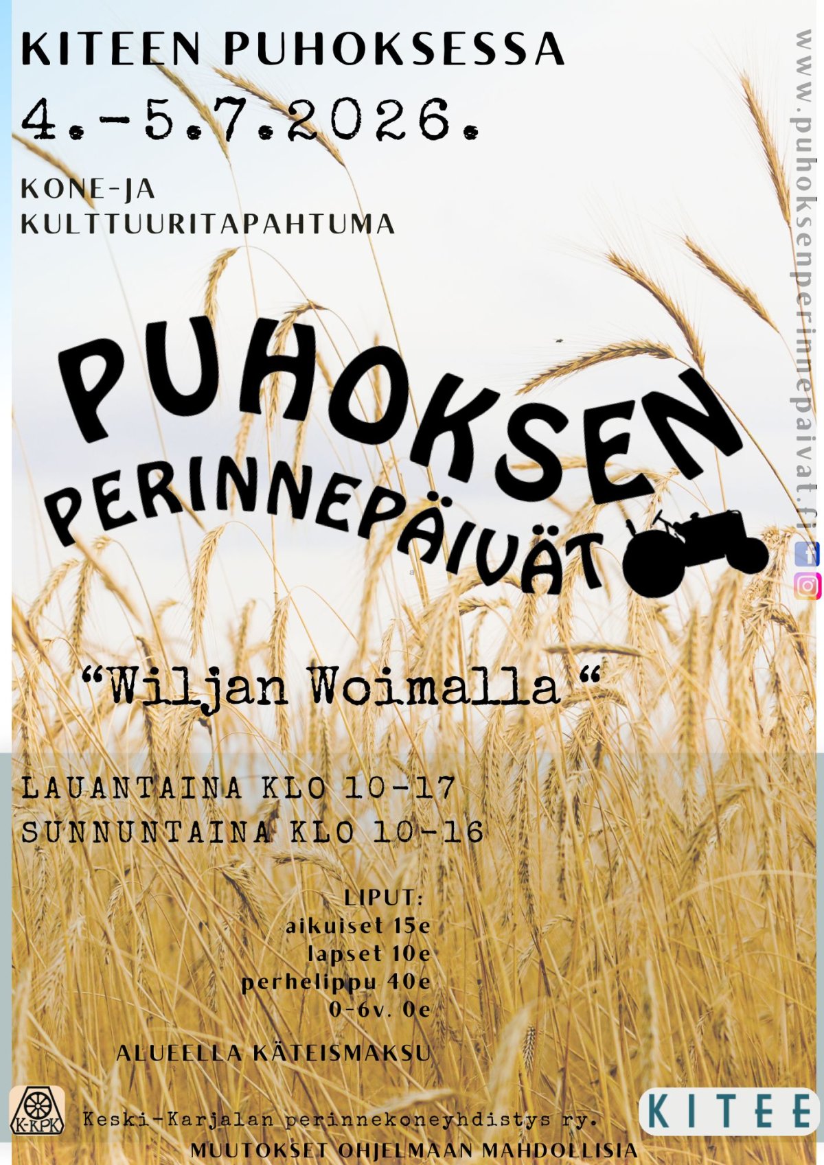 Onko sinulla itsellesi tarpeettomia vanhoja pieniä koneita, laitteita käsityökaluja tms. muita vanhoja esineitä ja tahtoisit luovuttaa ne Keski-Karjalan perinnekoneyhdistyksen ylläpitämään näyttelyyn Puhoksen perinnenavetalle?
